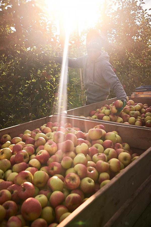 Die Wertschöpfung bleibt also bei den bäuerlichen Familien. Alle landwirtschaftlichen Betriebe verfügen über eigene Lagerkapazitäten, so dass 90% der Ware in kontrollierter Atmosphäre aufbewahrt werden können und bis weit ins neue Jahr verfügbar sind. Auch Sortier- und Packanlagen sind auf den jeweiligen Höfen vorhanden – so können individuelle Wünsche optimal erfüllt werden.