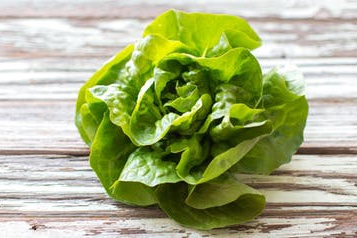 Frischer Gärtner-Kopfsalat. Er ist sehr reich an den Vitamin A (u.a. gut für das Sehvermögen), Vitaminen B1 & B2 (wichtig für Herz und Nervensystem) sowie Vitamin C (Stärkung des Immunsystems).